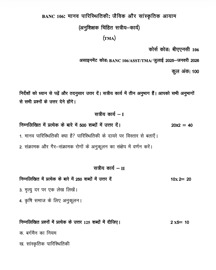 ✨ IGNOU BANC–106 (July 2025 – June 2026) – Solved Assignment