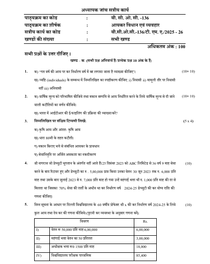 BCOC-136 (Hindi Medium) explains the structure, rules, and application of the Indian Income-Tax Act, 1961. This course helps students understand: