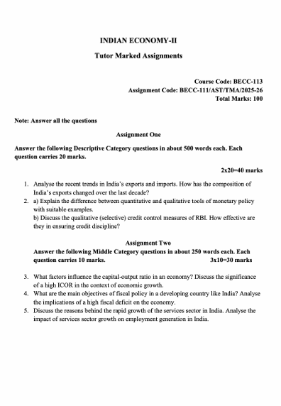 📘 IGNOU BECC-113 Assignment Details