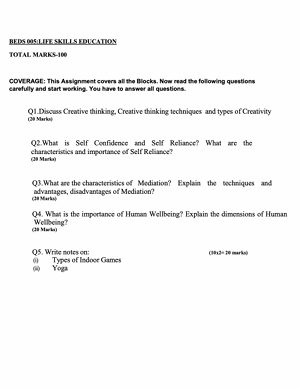 We provide you with the latest, updated, and accurate solved assignments for the session July 2025 – June 2026, specially designed for IGNOU learners. These solved assignments strictly follow the official IGNOU syllabus and question pattern for the (BEDS-005 – Life Skills Education).Our solved assignment ensures clarity, accuracy, and scoring-oriented answers — helping you submit high-quality academic work with confidence.