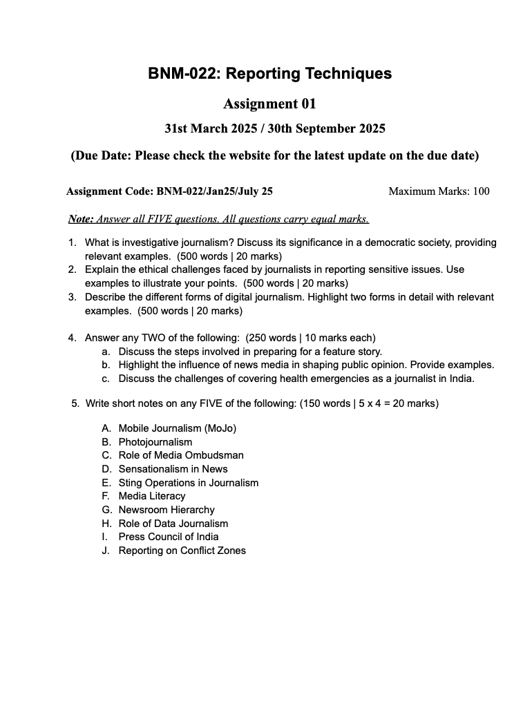 BNM 022 – Techniques of Reporting – IGNOU SOLVED ASSIGNMENT 2025-26