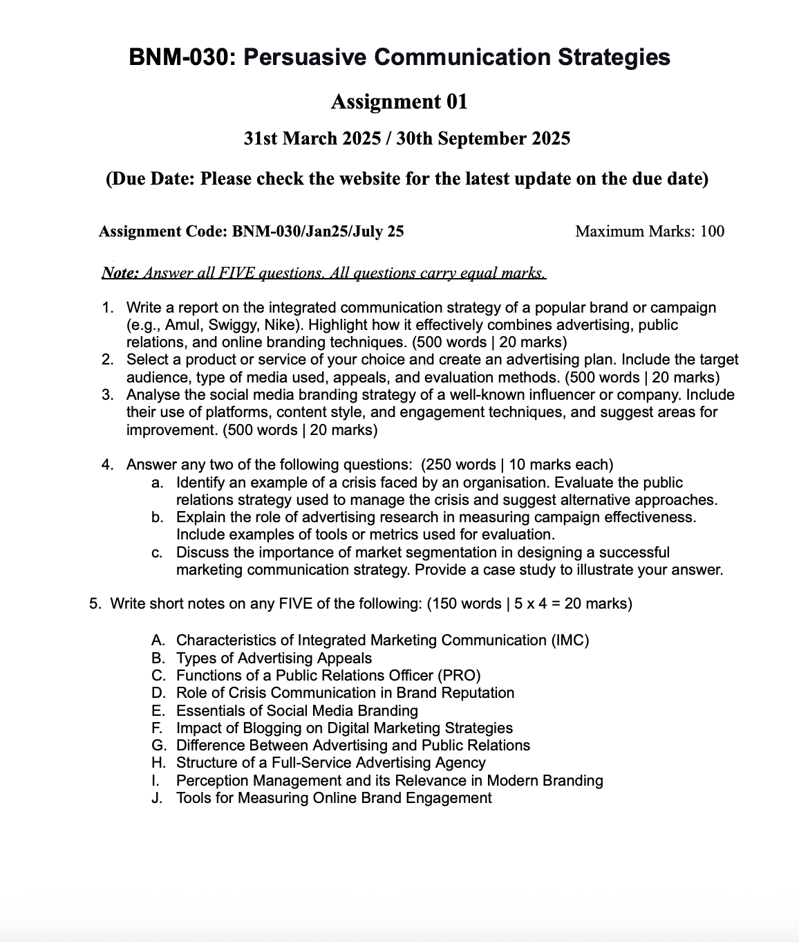 BNM 030/130 – Persuasive Communication Strategies – IGNOU SOLVED ASSIGNMENT 2025-26