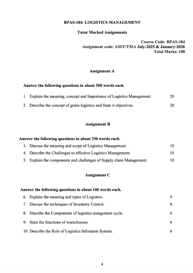 BPAS 184 – Logistics Management – IGNOU SOLVED ASSIGNMENT 2025-26