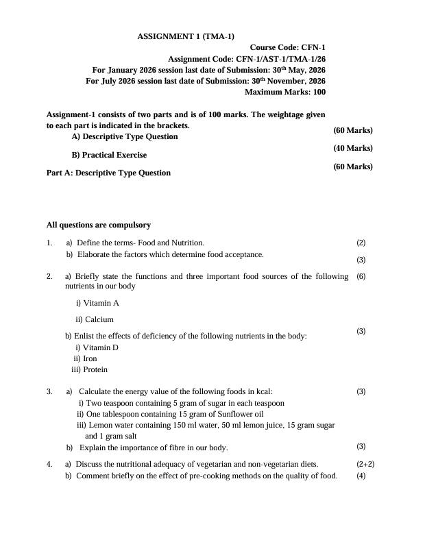 CFN 001 – You and Your Food – IGNOU SOLVED ASSIGNMENT 2025-26
