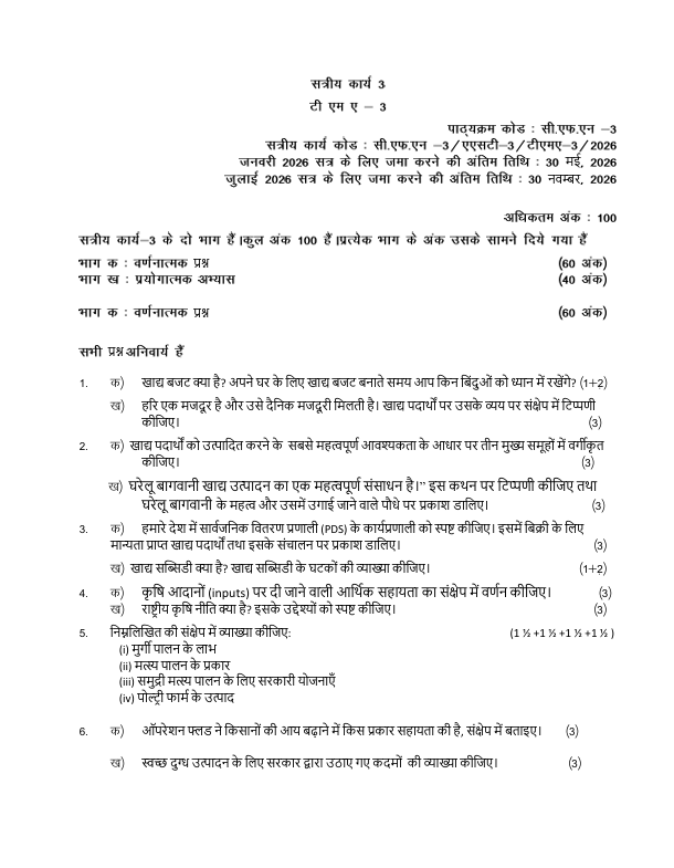 CFN 003 – भोजन और पोषण में प्रमाण पत्र कार्यक्रम – IGNOU SOLVED ASSIGNMENT 2025-26