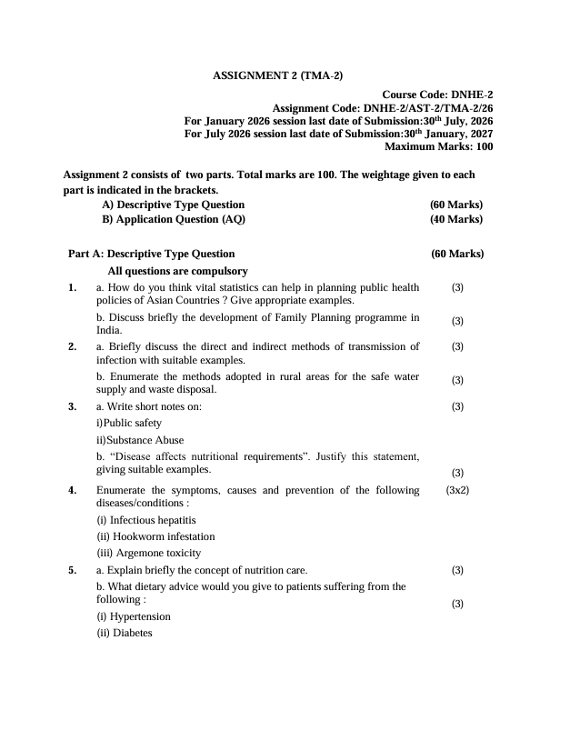 DNHE 002 – Public Health and Hygiene – IGNOU SOLVED ASSIGNMENT 2025-26