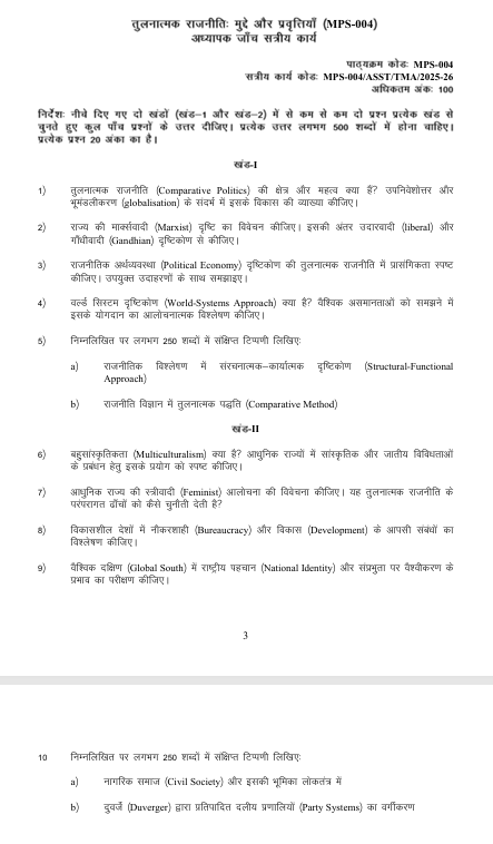 MPS 004, एम.ए. (राजनीति विज्ञान) कार्यक्रम का एक अत्यंत महत्वपूर्ण और विश्लेषणात्मक पाठ्यक्रम है।
