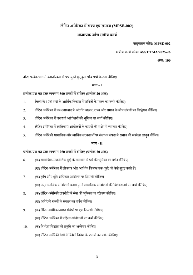 📚 MPSE-002 – लातिन अमरीका में राज्य एवं समाज के बारे में